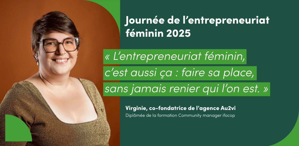 Bio express. Assistante maternelle à domicile pendant plusieurs années, Virginie Vélu décide (en 2018) de changer de voie et de vie. « La crise de la trentaine certainement », plaisante-t-elle, pour justifier de sa reconversion à 360 degrés. Passionnée de digital, elle choisit en effet de s’y former avec ifocop, optant alors pour la formation Community Manager. A l’issue de sa certification, elle cofonde « Au2vi », une agence webmarketing qu’elle dirige aujourd’hui avec son associée Audrey, elle aussi spécialiste en stratégie digitale.